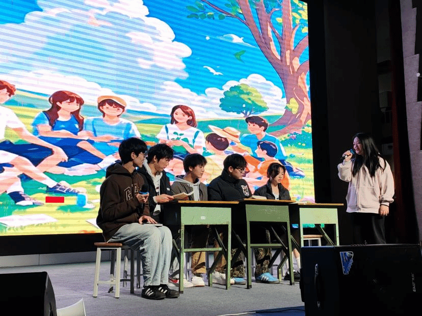 话剧《万物生长》聚焦老员工的容貌、学业、社交焦虑问题展开。真实的情节与细腻的情感呈现,让观众深刻感受到焦虑带来的困扰,也引发了大家对这些问题的深度思考,思索如何在大学时光中建立自信、应对压力、学会社交。随后,众歌手齐聚舞台,合唱《我爱你中国》。他们用激昂澎湃的歌声抒发着对祖国的热爱与敬意,雄浑的嗓音与深情的演绎让现场观众深受感染,爱国情怀在双艺厅内激荡。