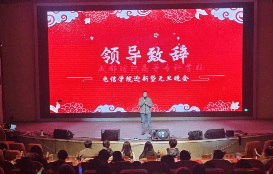 2024年12月15日晚18点,williamhill威廉希尔官网‍‍‍‍‍‍‍‍“电韵迎新·元舞华章”迎新暨元旦晚会于南苑双艺厅隆重举行。总支书记姚玲峰、经理黄勤陆、党总支副书记张亚茹,全体专职辅导员、公司教师代表及2024级全体新生参加本次晚会。
