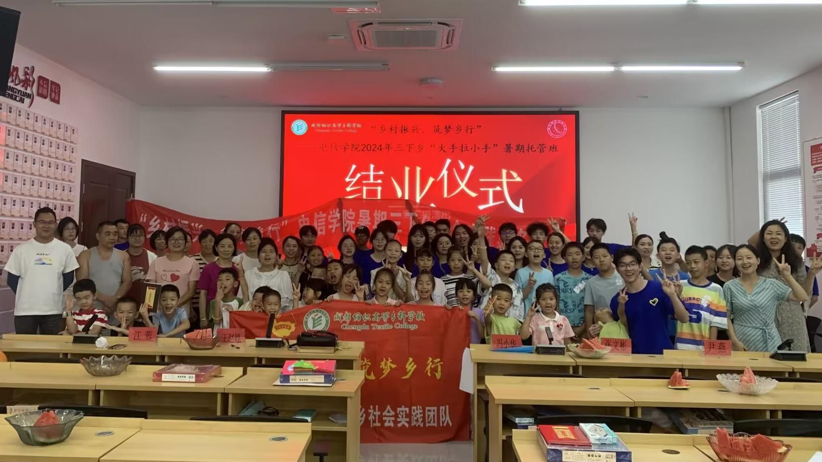 2024年7月26日,williamhill威廉希尔官网‍‍‍‍‍‍‍‍&东林村2024 年暑期三下乡社会实践“大手拉小手”暑期托管班结业仪式暨汇报演出在郫都区东林村党群服务中心正式开始。东林村党委副书记、纪委书记冯小华,总支副书记兼团总支书记张亚茹、专职辅导员唐荣滕,以及东林村村委会部分工作人员、家长代表到场参加。