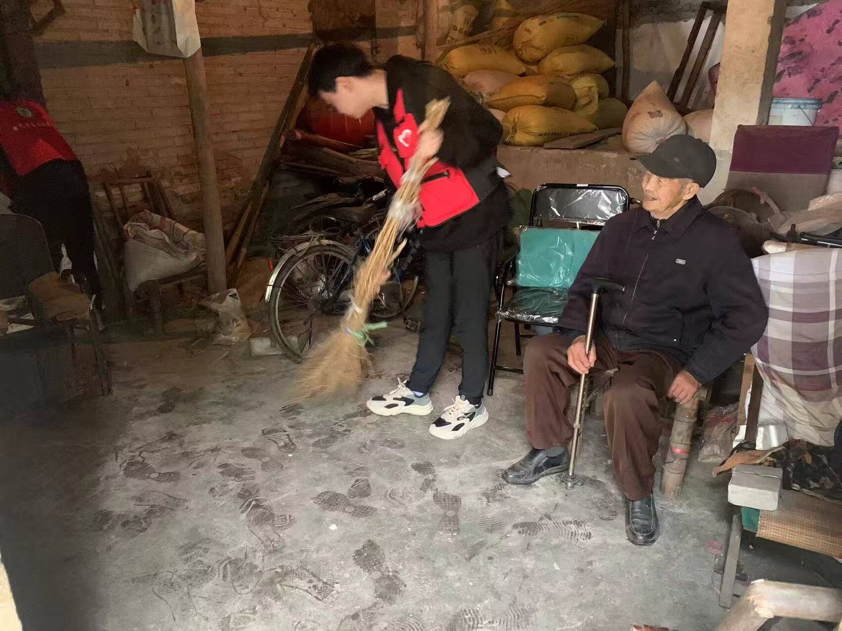 随后,大家便迅速投入到清洁打扫工作中,志愿者们拿着打扫工具清扫地面,将灰尘和杂物清理得干干净净,认真擦拭桌子,拂去灰尘,让桌面焕然一新。整理房间里的物品摆放,使其更加整洁舒适,还为老人们整理干柴,将一根根干柴摆放整齐,以便日后使用更加方便。这些行动虽小,却能为老人的生活增添一份温暖与舒适。