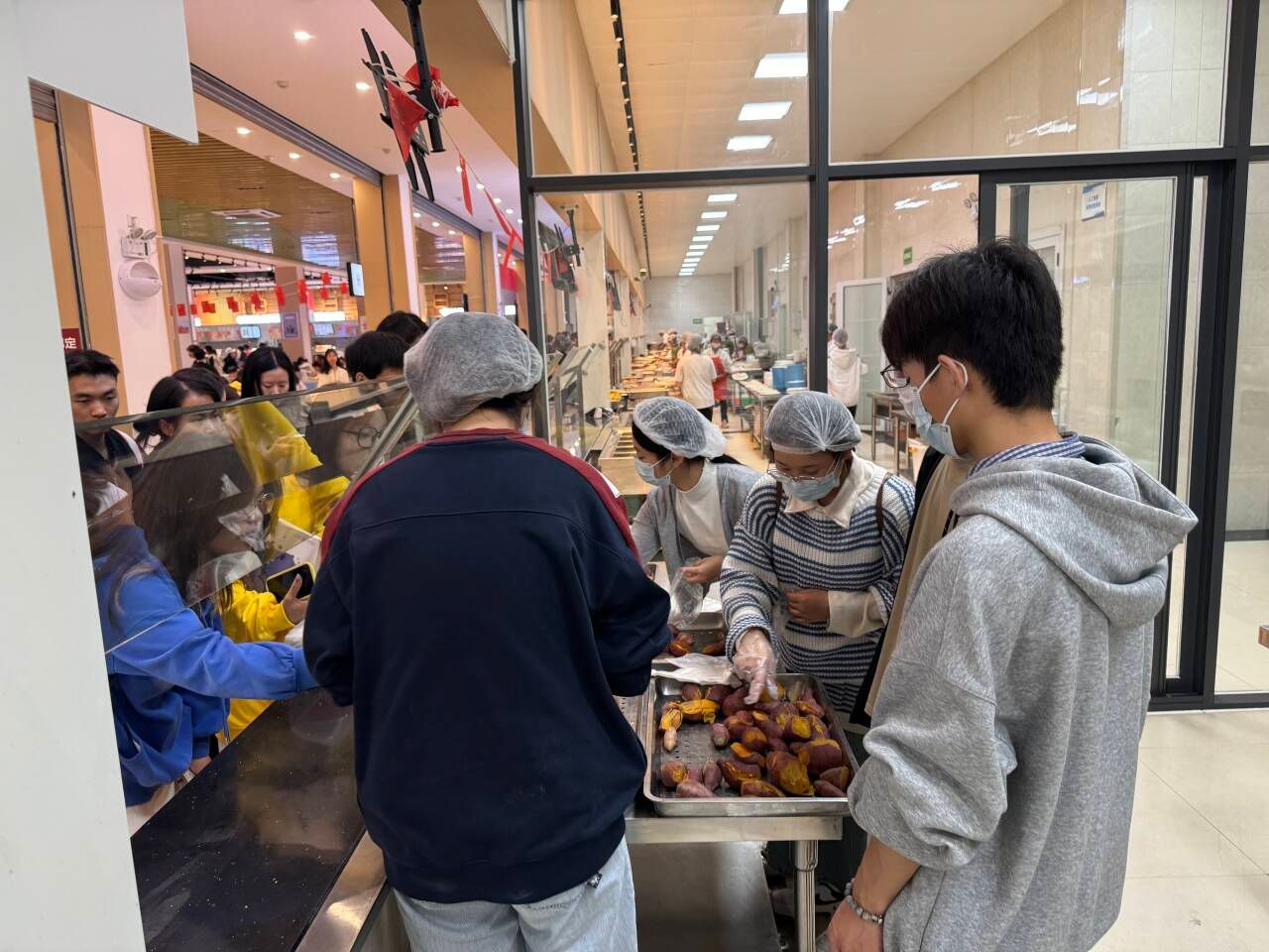 williamhill威廉希尔官网‍‍‍‍‍‍‍‍参与红薯分享活动的志愿者们在劳动教育成果分享窗口热络的向师生分享劳动成果,干劲十足。当蒸烤出糖稀的红薯散发的香甜融化在空气中,薯香四溢,吸引了众多师生前来领取,品尝软软糯糯的有机红薯。