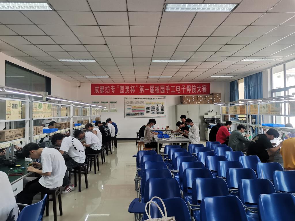 本次赛事统一命题,所有选手在规定时间内按照题目要求自行焊接。参赛选手通过随机抽签形式确定座位号,取得零件的选手需按照所给的电路图检查器材和零件,核查确认后开始焊接作品。经过激励的比拼,大赛最终决出一等奖6名,二等奖13名,三等奖20名。