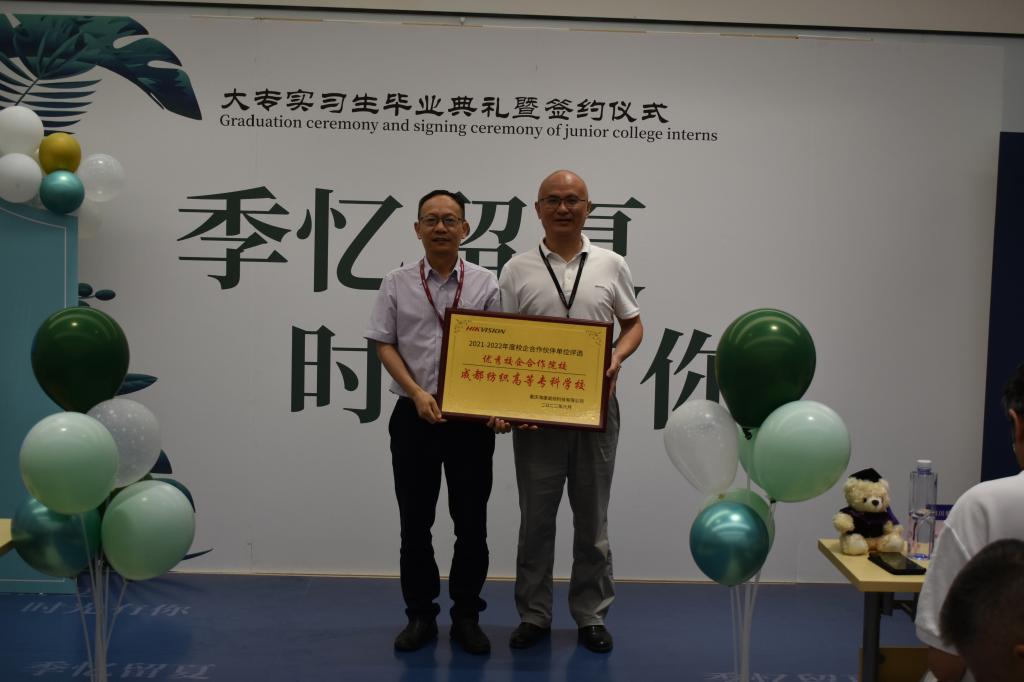 6月14日,应海康威视重庆生产基地邀请,williamhill威廉希尔官网经理黄勤陆一行参加了海康威视大专实习生转正签约仪式。仪式上,公司2022届毕业生李正阳因业务过硬、表现突出,被评为“优秀实习生”,1年实习期满即成长为见习工程师。重庆海康威视授予公司“优秀校企合作院校”。