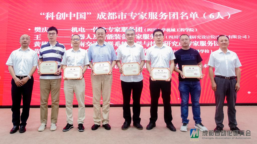 会上颁发了“科创中国”成都市专家服务团聘书。市科协在全市科协系统联系服务的各级学会征集遴选“科创中国”成都市专家服务团,聘任成都自动化研究会推荐的智能制造、电子信息、人工智能等领域的包括黄勤陆在内的6位专家为服务团成员。专家服务团将推进成都市“科创中国”试点城市建设,助力广大科技专家施展专业才能,促进产学研协同发展,助推产业建圈强链。