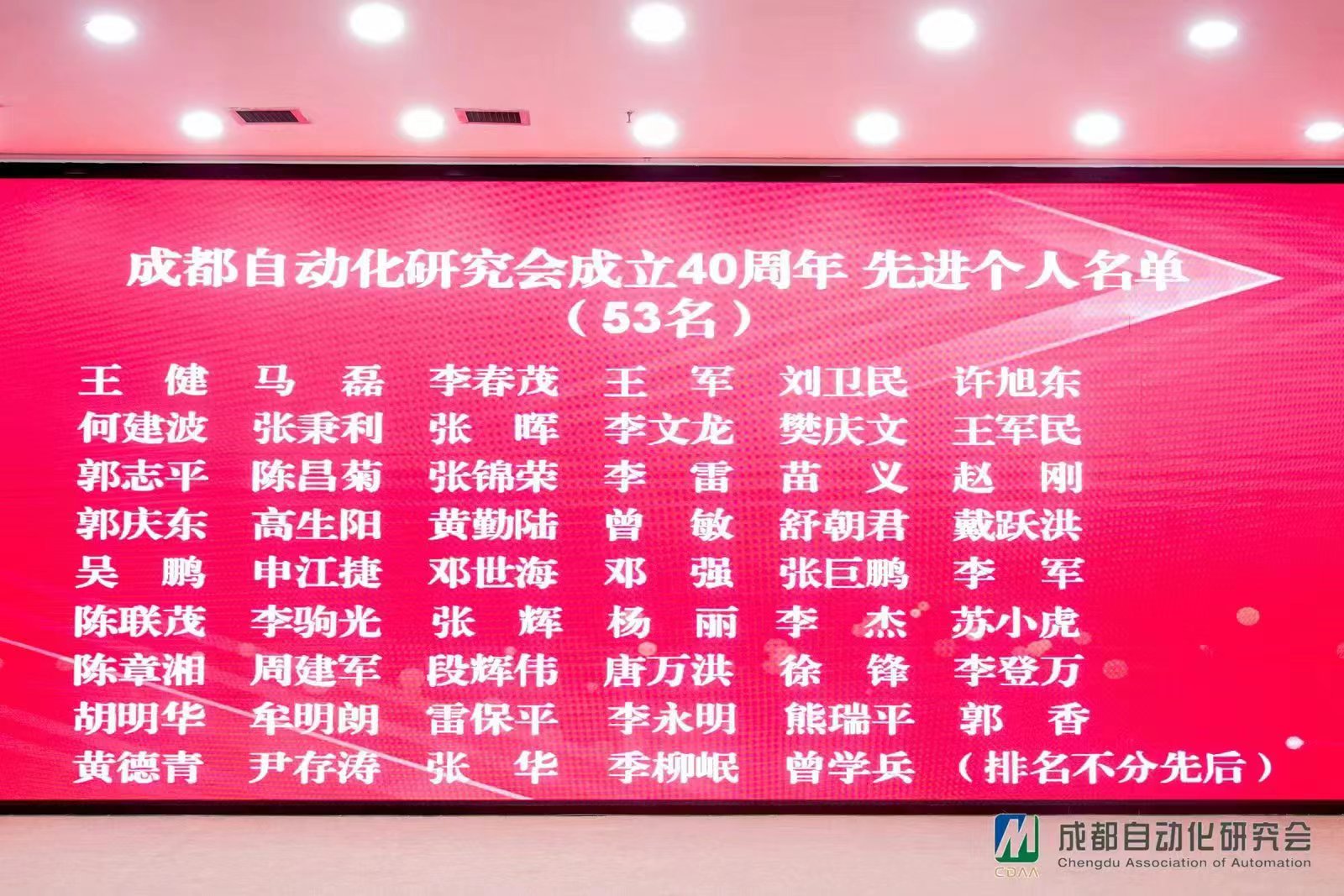 开幕式上宣读了《关于表彰成都自动化研究会成立40周年先进集体、先进个人的决定》,授予威廉希尔足球官网等16个集体为研究会成立40周年先进集体、授予黄勤陆等53位会员为研究会成立40周年先进个人。