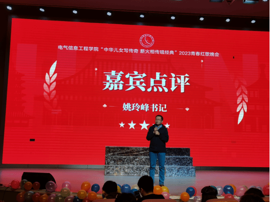 最后,由总支姚玲峰书记作总结发言。姚书记高度评价了本次晚会,对晚会筹备人员表示深切的慰问,他深情鼓励同学们做“有理想、敢担当、能吃苦、肯奋斗”的新时代青年。