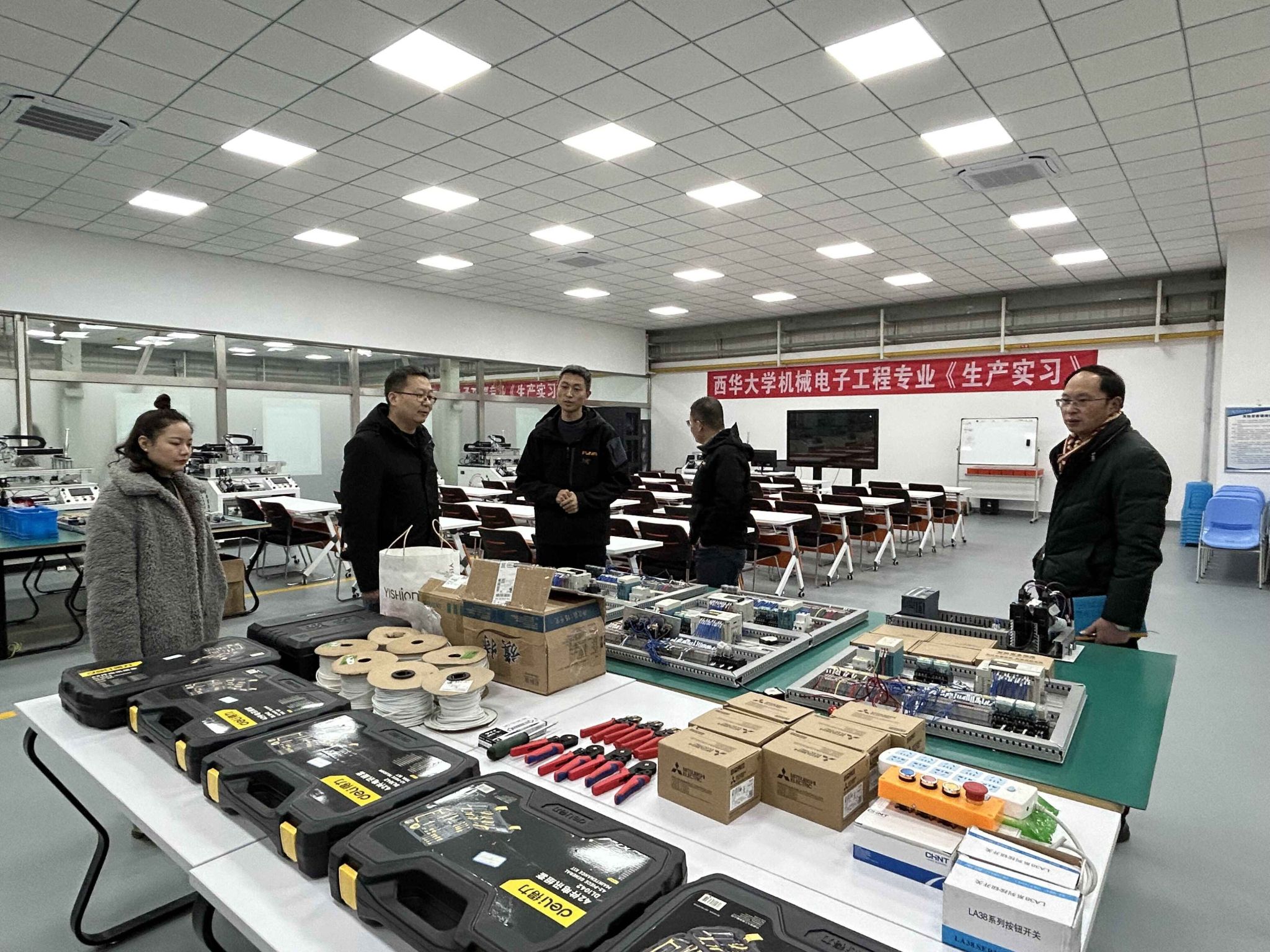 在经理徐朝均的带领下,姚玲峰一行参观了智能制造公司培训基地的工业视觉平台和智能制造平台等设备。在参观过程中姚玲峰详细询问了相关设备的功能、基于设备的构造,探讨了设备在安装、调试和维护中所涉及的知识点,了解了与williamhill威廉希尔官网相关专业人培方案中课程体系的适配度。双方在座谈中,就“重点领域校企合作”、“人力资源提升”“就业实习基地建设”和“定向人才培养培训”四个板块进行了深入交流沟通,达成了初步合作意向。下一步,williamhill威廉希尔官网将为成都富纳基地的项目选拔毕业生前往就业,此外还将选派专业老师前往富纳集团的常熟培训基地参加专项团队培训。