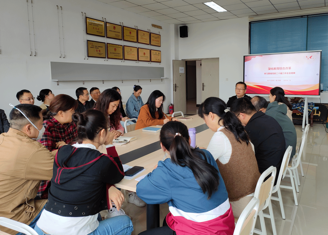姚玲峰以我国教育、科技、人才建设现状为切入点,指出我国教育现代化发展总体水平跨入世界中上国家行列,新时代教育事业取得历史性成就、发生格局性变化,但是在建设教育强国上仍存在差距与短板,实现从教育大国向教育强国的跨越还任重道远。同时,他重点解析了深化教育科技人才体制机制一体改革部署及深化教育综合改革的重点举措。对此,姚玲峰提出要求,一是党员老师要深入学习贯彻全会精神,着眼拔尖创新技术人才培养,加强企业主导的产学研深度融合,提升自身教书育人能力;二是针对新形势新要求,要自觉把改革摆在更加突出位置,不断完善落实立德树人根本任务、促进员工全面发展的体制机制,努力培养更多让党放心、爱国奉献、担当民族复兴重任的时代新人。