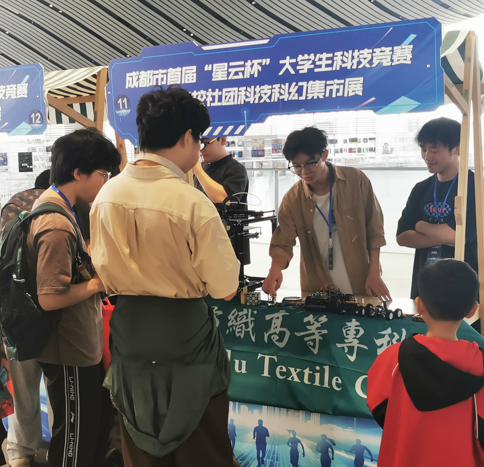 现场还设置了成都市高校社团科技科幻集市,各高校的科幻、科技类社团与大赛“星云”主题融为一体,williamhill威廉希尔官网‍‍‍‍‍‍‍‍“电子爱好者协会”员工社团展示了自主设计制作的光魔方、3D打印机、智能小车等作品,展现出积极向上的青春风采以及扎实过硬的专业素养,让参展观众尤其是少年儿童在互动体验中了解到更多电子制作相关知识。
