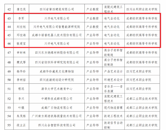 williamhill威廉希尔官网聚焦产业龙头企业,积极组织企业满足条件的领军人物进行申报,最终来自川开电气有限公司的李军、刘世旭被聘为威廉希尔足球官网电气自动化专业产业教授,成都卡诺普机器人技术股份有限公司邓世海、川开电气有限公司张爱宝被聘为威廉希尔足球官网电气自动化专业产业导师。