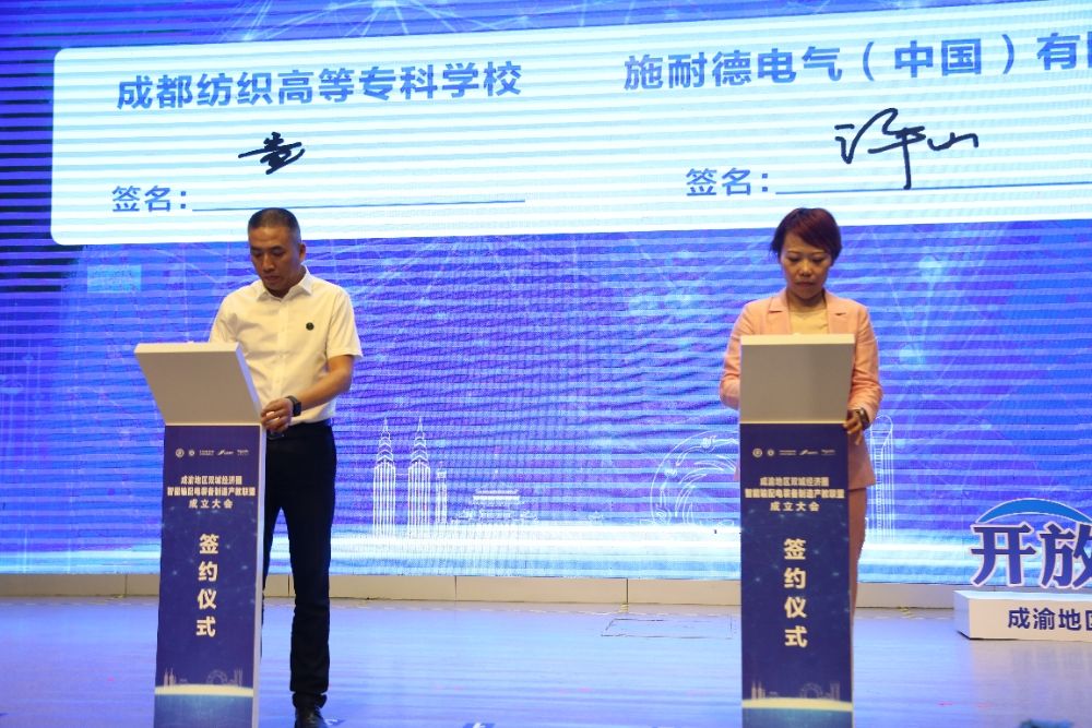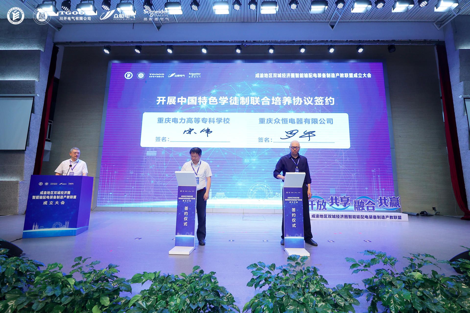 联盟成立大会后,举行了公司与施耐德电气校企合作框架协议、与川开电气合作共建智能输配电装备制造产业公司协议签约,重庆电力高等专科公司与重庆众恒电器有限公司开展中国特色学徒制联合培养协议、与ABB(中国)有限公司共建ABB电气数字化工程师公司协议等4个校企合作项目签约仪式,举行了公司与川开电气开展中国特色学徒制联合培养拜师仪式,川开电气还向公司捐赠了一批价值150万元的智能电气成套实训设备。会前举行了公司法国施耐德电气绿色低碳技术应用中心揭牌仪式。