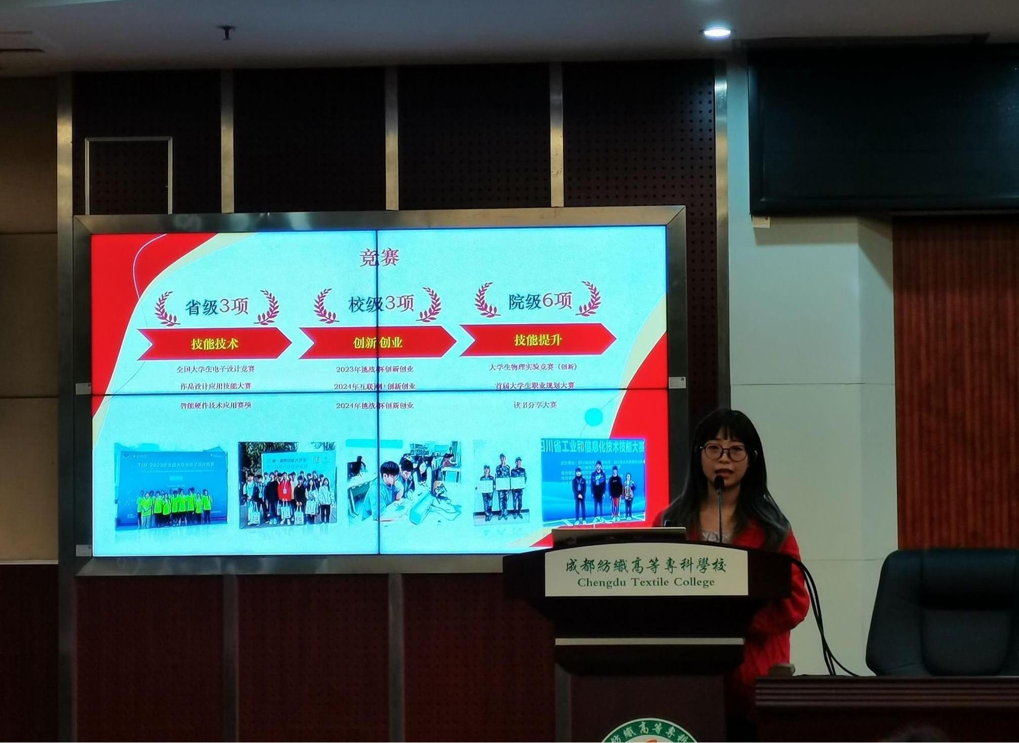 在校大三员工黄蓉和肖旭分别做了交流发言。黄蓉在交流中详细的介绍了各类专业竞赛的准备要点,并以自己担任电子爱好协会副会长的经验为例,分享参加专业竞赛如何做前期准备、如何团队沟通及如何有效训练,鼓励大家多尝试,积极挑战自我。肖旭在交流中分享了自己的学习方法和学习规划,并就自己在学习中走过的弯路和原因进行分析,建议弟学妹们一定要根据自我特性制定有效计划。最后,肖旭就自己在蓝天救援队学习到的经验和学弟学妹们进行互动,现场演示了消防灭火器的使用及自我保护方法,同学们热情高涨,现场响起阵阵掌声。