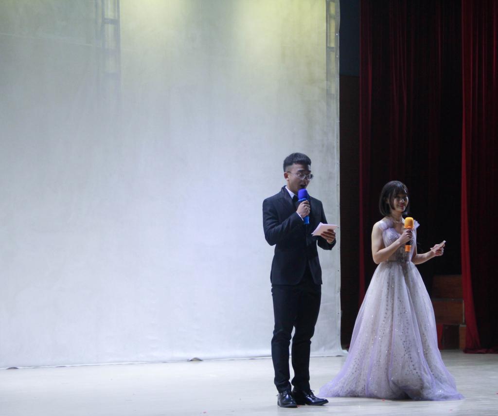 决赛场上,兄弟公司活力四射的开场舞拉开了此次活动的序幕。随后,10名决赛选手依次经过自我介绍、模拟主持、才艺展示、现场回眸四个环节进行比拼:他们的自我介绍形式新颖,语言独特,适当的肢体动作赢得了台下观众的阵阵掌声;模拟主持中,有活力欢快的“文艺晚会”,关注焦点、播送时事的“新闻联播”,迎新送旧,喜气满满的“新年联欢晚会”;才艺展示上,有吉他弹奏、相声表演、歌曲演唱等;现场回眸环节,每位选手都道出了参加此次比赛的心声,深深地感动了现场观众。