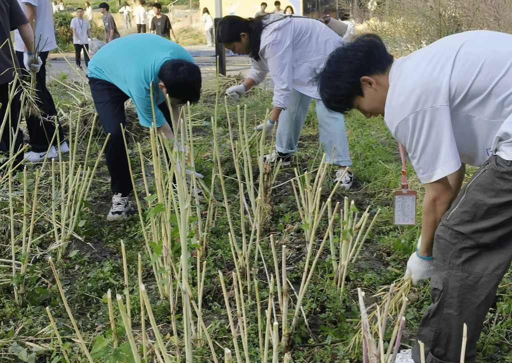 从春日育苗到夏初丰收,这片承载着师生耕耘印记的沃土,生动诠释着新时代劳动育人的深刻内涵。金浪翻涌的油菜田间,师生团队有条不紊地开展收割作业。镰刀起落间,青年学子躬身实践传统农事技艺,在收割、打捆、运输、清秆的完整劳作链条中,切身感受“晨兴理荒秽,带月荷锄归”的农耕真谛。公司党总支副书记张亚茹、专职辅导员景秋萍全程示范指导,将思政教育融入田间教学,以实际行动践行“五育并举”育人理念。