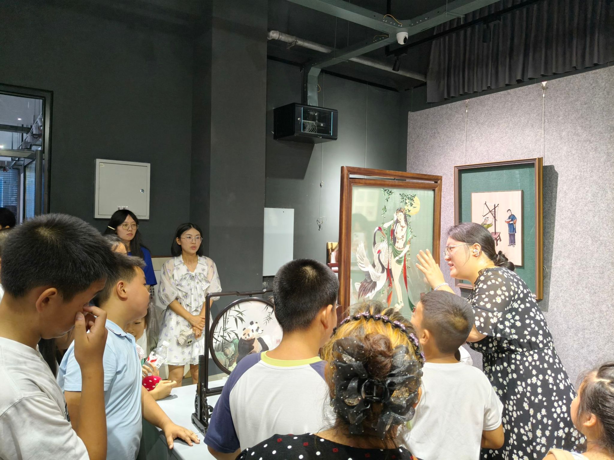 在蜀绣中心,老师向孩子们介绍了双面绣的独特技艺,并带领他们参观了往届同学的蜀绣作品,让孩子们近距离感受非遗文化的魅力。