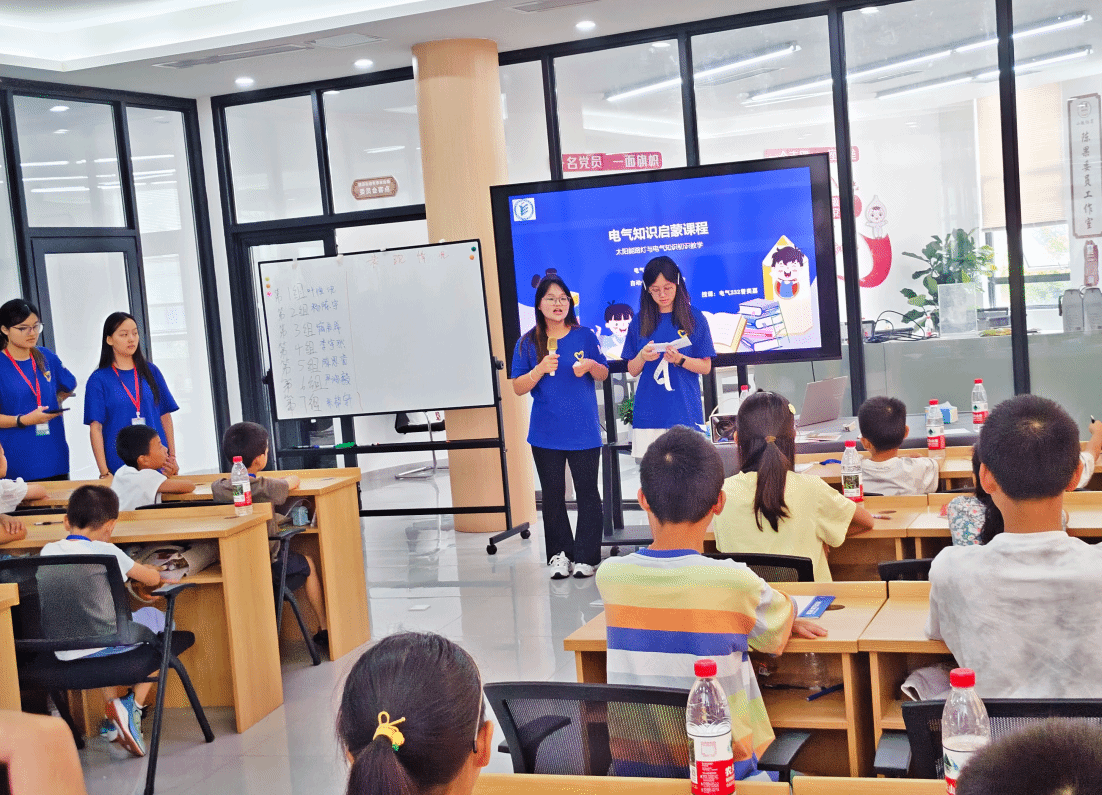 实践团成员充分发挥专业优势,精心设计了4个主题教学单元。在电气奥秘与绿色能源初探课上,曾奕嘉同学化繁为简,引导孩子们认识电的本质和电气安全常识。太阳能板路灯实验环节成为本堂课亮点,孩子们亲手拼接电路,见证阳光如何神奇地转化为电能并点亮LED灯,理解了清洁能源的实际应用价值,绿色环保的种子悄然植入心田。