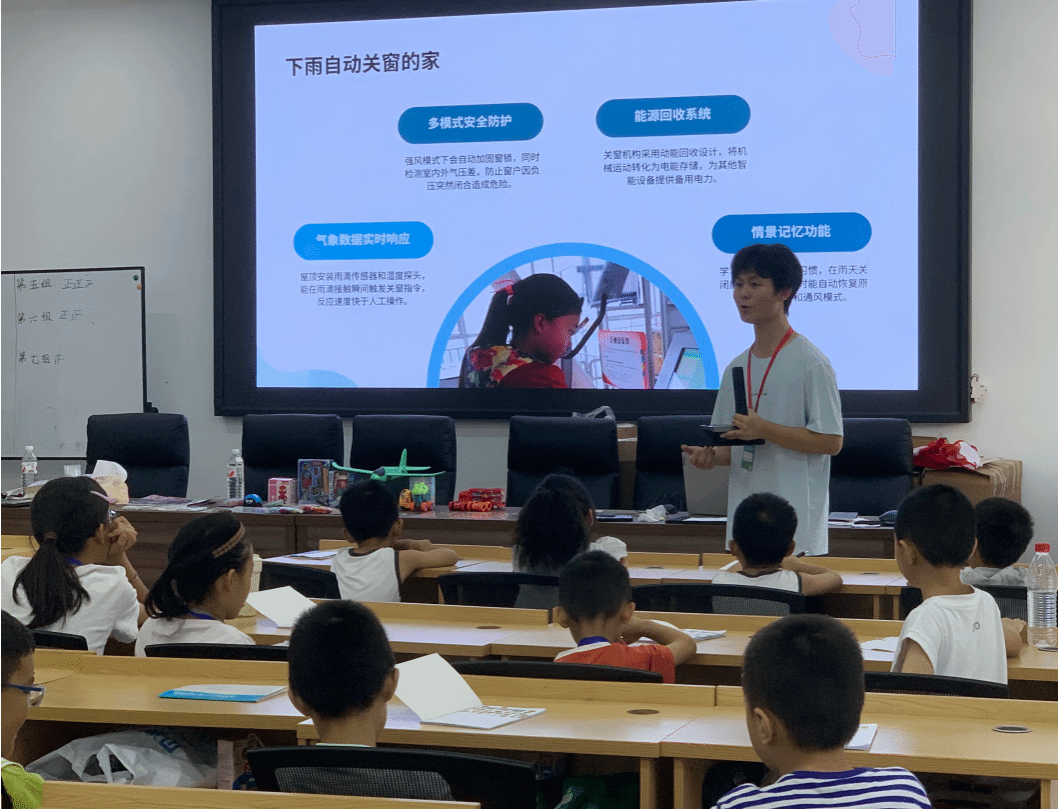 电子信息与自动化知识系列课程设计注重“手脑结合、知行合一”,每个课时都包含了原理讲解、实物展示与动手实验环节。实践团成员们耐心细致、手把手指导,确保每位参与的孩子都能沉浸其中,获得新奇而充实的体验。