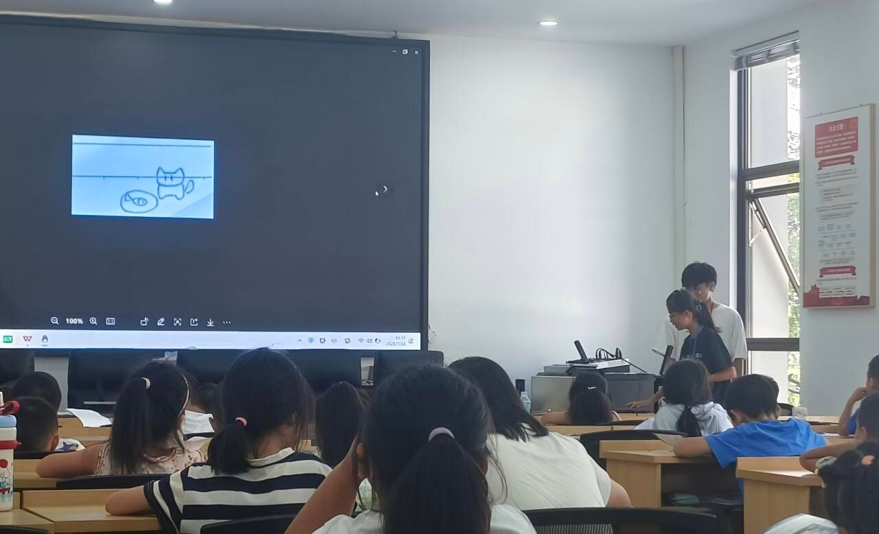 在创意实践环节,志愿者展示了定格动画的创意延伸形式——“翻页画”(一种简易的手绘定格动画)。孩子们在指导下化身“小小动画师”,发挥想象力,亲手绘制属于自己的动态故事。分享环节,孩子们自豪地展示自己的作品,课堂充满了欢声笑语与创意火花。