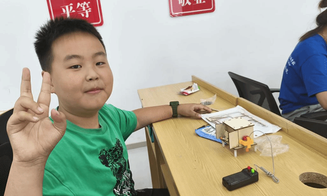 团队成员以“探索人工智能”为主线,精心打造五次主题课程,课程体系科学严谨、层层递进。《初识·AI的智慧萌芽》用生动的语言和生活实例引导孩子们初识AI概念,让抽象的“人工智能”变得可知可感,激发了孩子们对智能世界的好奇心。《解码·AI的思维密码》深入基础原理,通过动画演示和互动问答,帮助孩子们理解人工智能如何“学习”和“思考”,初步建立对智能逻辑的认知。《触达·AI的千面应用》聚焦AI应用与影响,结合视频展示了人工智能在医疗、交通、农业等领域的实际应用,让孩子们看到智能科技如何改变生活,引发对科技价值的思考。《创玩·AI的机械奇想》畅想AI未来,注重动手实践。在团队成员的指导下,孩子们亲手体验了制作“开门虫”机器人的乐趣。从认识零件、动手组装到调试运行,孩子们在实践中深刻理解了机械结构与基础控制原理,成功制作出专属机器人作品时,成就感与好奇心溢于言表。《绘梦·AI的无限疆域》课程引导孩子们结合所学知识,利用AI绘画工具进行创意实践,描绘心中科技蓝图。输入关键词生成图像后,再对图像进行二次创作,直观感受科技赋能艺术的魅力,完成了一幅幅充满想象力的“未来画像”。