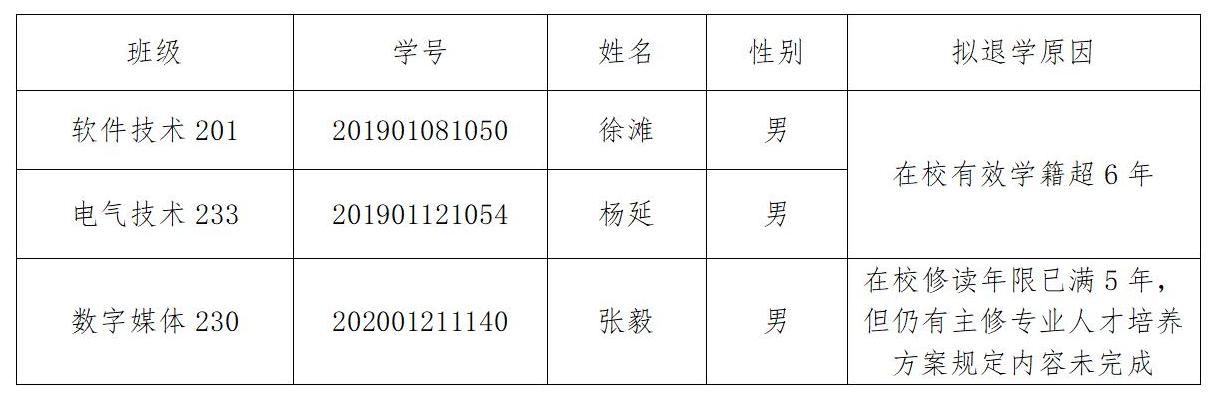williamhill威廉希尔官网软件技术201班徐滩等三位同学(详细信息见下表),根据教务处《关于拟给予周琳等33名超学籍年限员工退学处理的通知》,按照《威廉希尔足球官网学籍管理实施细则》相关规定,需做退学处理。经公司调查,并与员工本人及家长沟通确认后均对退学处理表示无异议。鉴于以上情况,经公司党政联席会议审议决定对该三位同学予以退学处理。