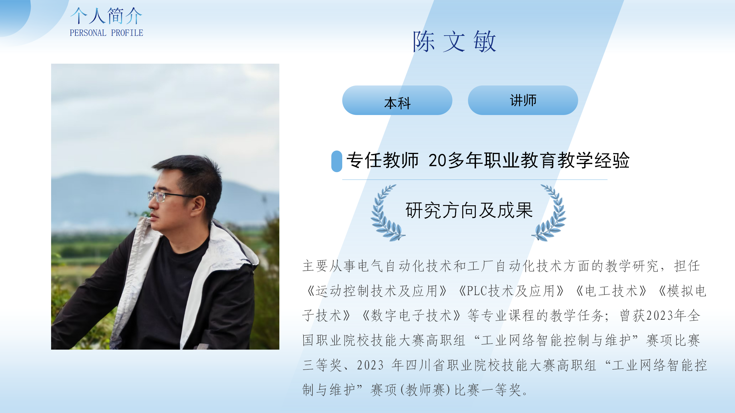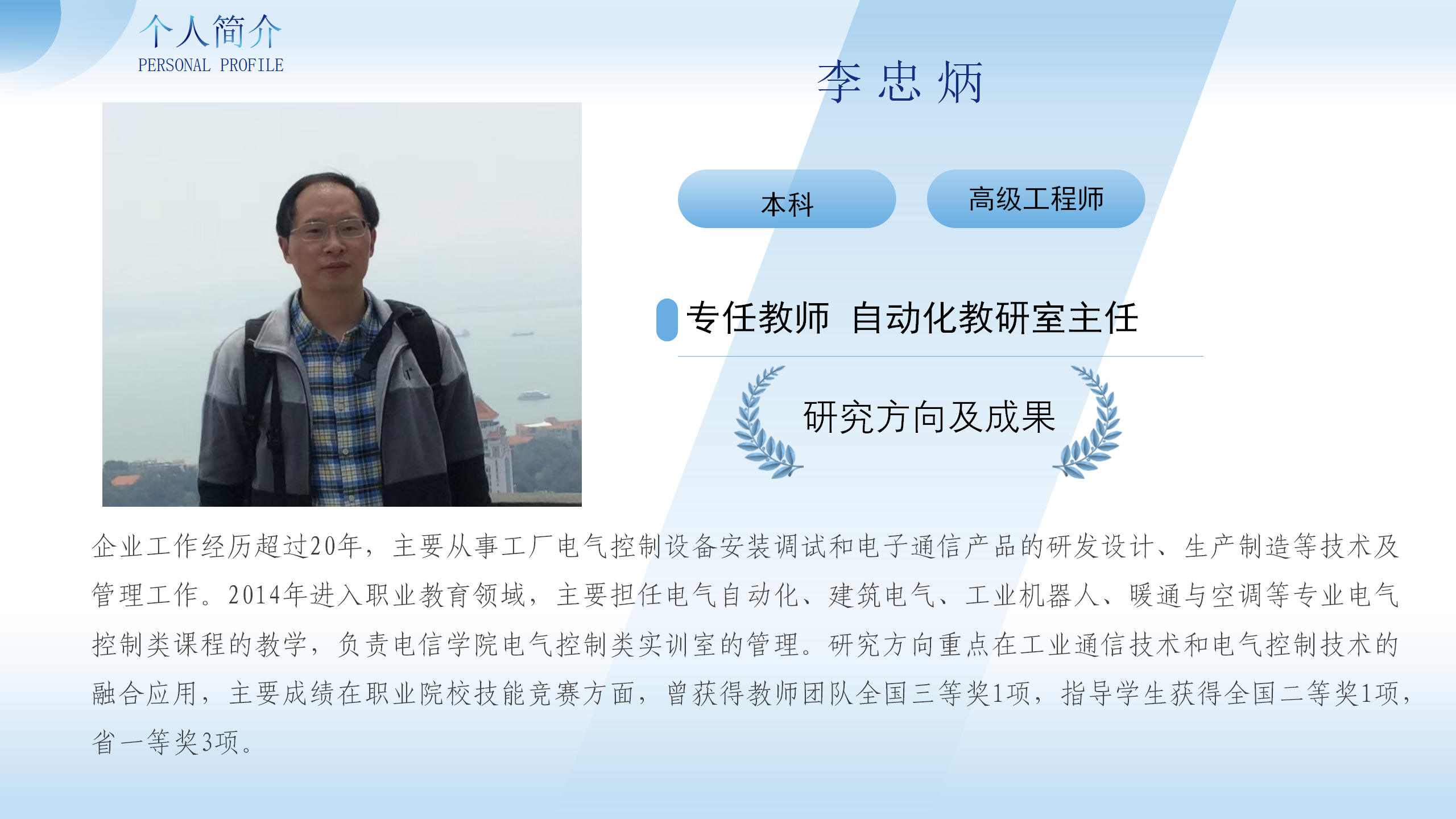 自动化教研室自动化教研室包括电气工程及其自动化(本科)、电气自动化技术、智能控制3个专业。教师队伍年龄结构、职称结构、双师结构合理,教学经验、实践经验丰富。现有校内专任教师23人,其中,高级职称13名,中级职称8名,硕士及以上学位22人,校外兼职教师17人。 团队教师具有较高的理论研究水平与丰富的实践工作经验,自动化教研室多名教师在研、完成了多个省级科研项目、校级科研项目。在国内外核心期刊杂志公开发表多篇专业学术论文,主编、参编高职高专规划专业教材,多名教师参加了公司骨干建设、省双高建设项目。 近年来,教研室通过与行业龙头企业合作,增强校企合作,将产教融合做实做深,承担了四川省第二批产教融合示范项目、中法施耐德绿色低碳产教融合示范建设项目。通过与企业的深层合作,培养和提高教师的实践教学能力、社会服务能力。 教研室团队团队: 教研室主任(兼电气工程及其自动化(本科)专业负责人):李忠炳 电气自动化技术专业负责人:丁韬 智能控制专业负责人:赵聃敏 教师成员:黄勤陆、姚玲峰、阮文韬、陈文敏、杜宝清、黄永晶、李林、刘红、刘苹、毛露露、冉会中、冉煦、任晓娜、宋培武、席亚明、赵晨宽 |